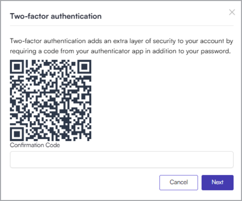 Enter the Confirmation Code from your Authenticator app. Click on Next.