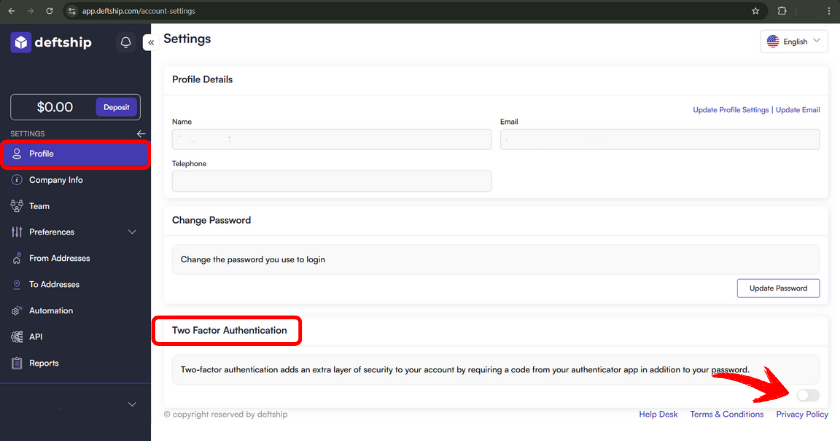 When it comes to DeftShip, 2FA provides that same extra layer of protection using an authenticator app. Once you enable it, you’ll be asked to enter a unique verification code from your chosen authenticator app (such as Google Authenticator) every time you log in. This means that even if someone obtains your password, they won’t be able to access your account without also having access to your authentication device, keeping your shipping data, client information, and business activity safe and secure.